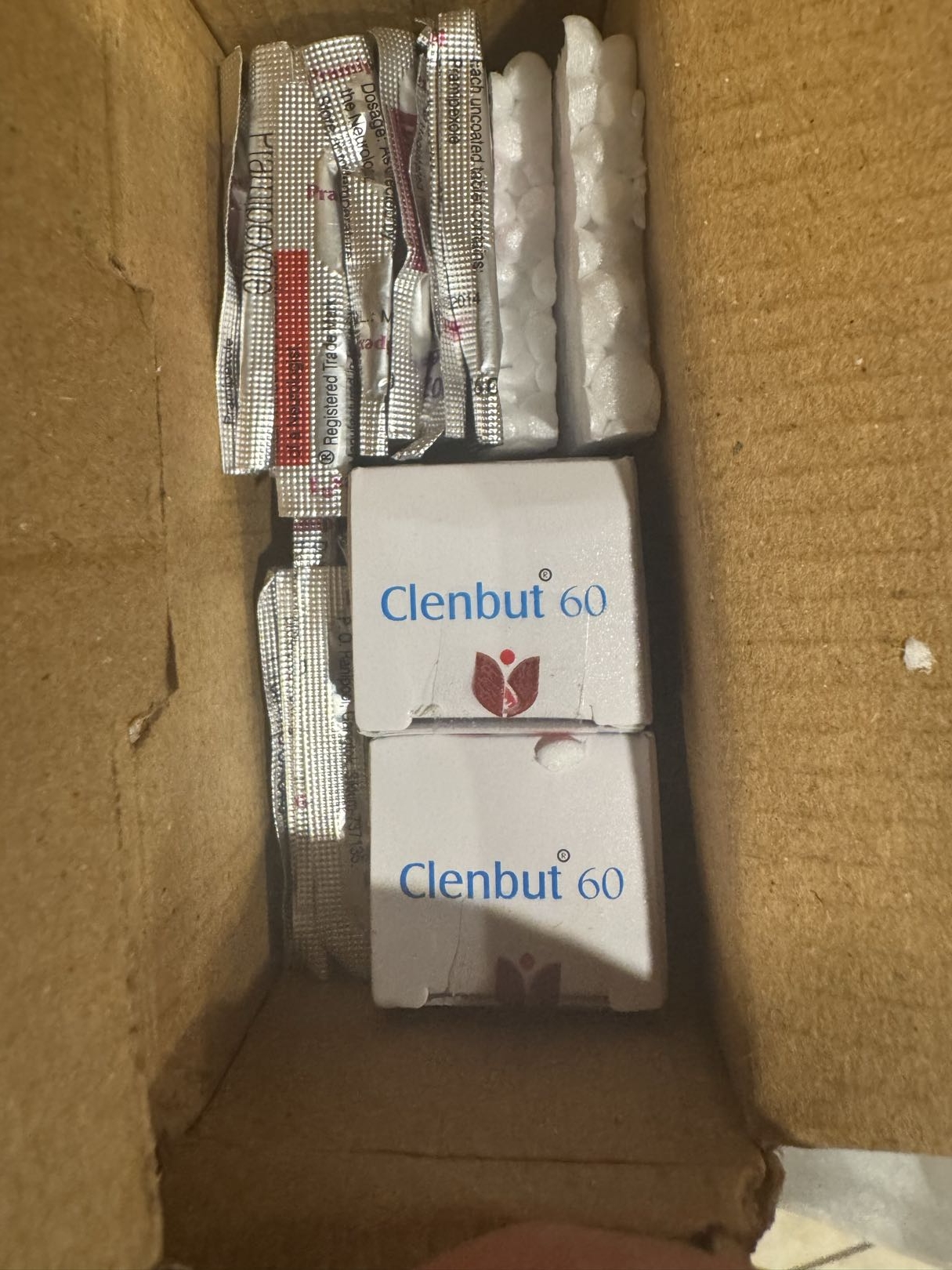 on top of me getting my indian clen (6000mcgs), i also found my missing vial of chinese clen, those shits can be up to 200mcg a pill lol so ill just say theyre 100mcg each, the chinese are really bad at making clen and clen is something you dont want to fucking overdose lol that shit actually has a kill count. 200mcg for a newbie can literally kill them, im not risking that so when its time to do a lil cutting break im only gonna take half a pill of chinese clen, i trust the indians since its from a real factory so im gonna take a full 60mcg pill.